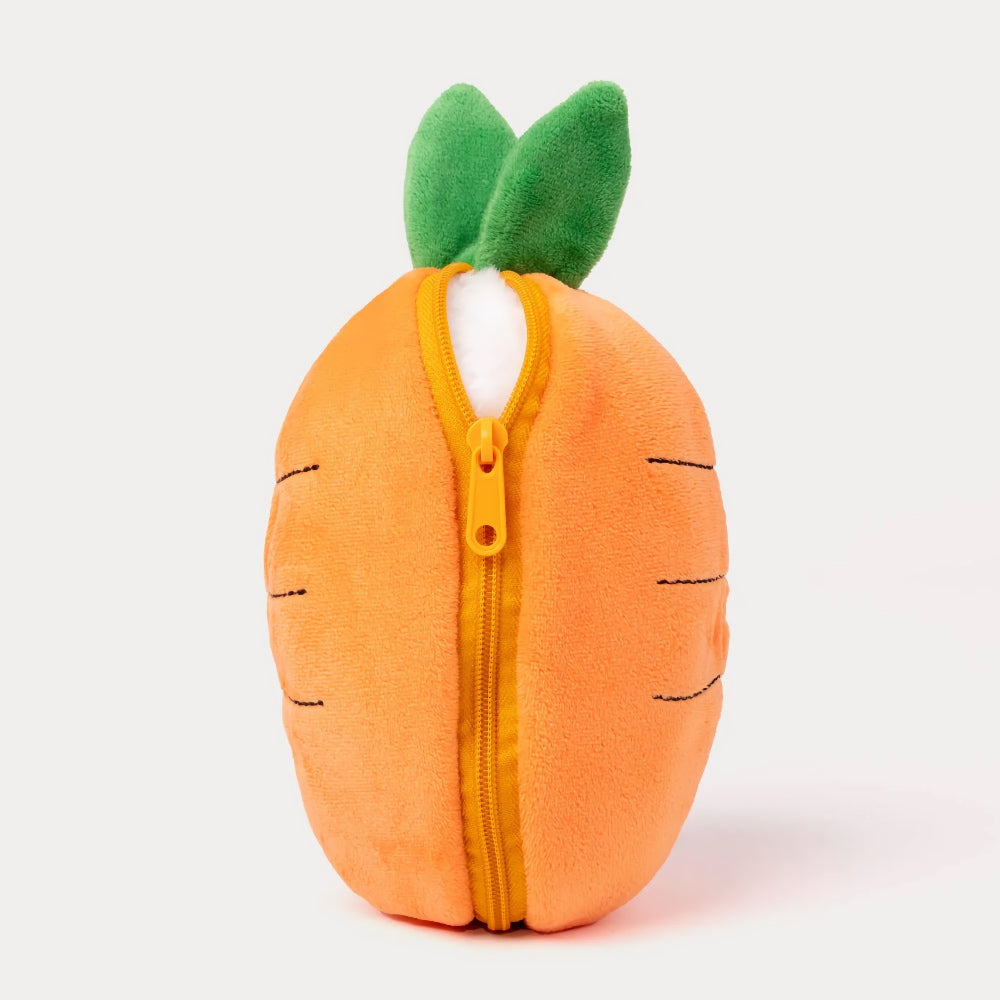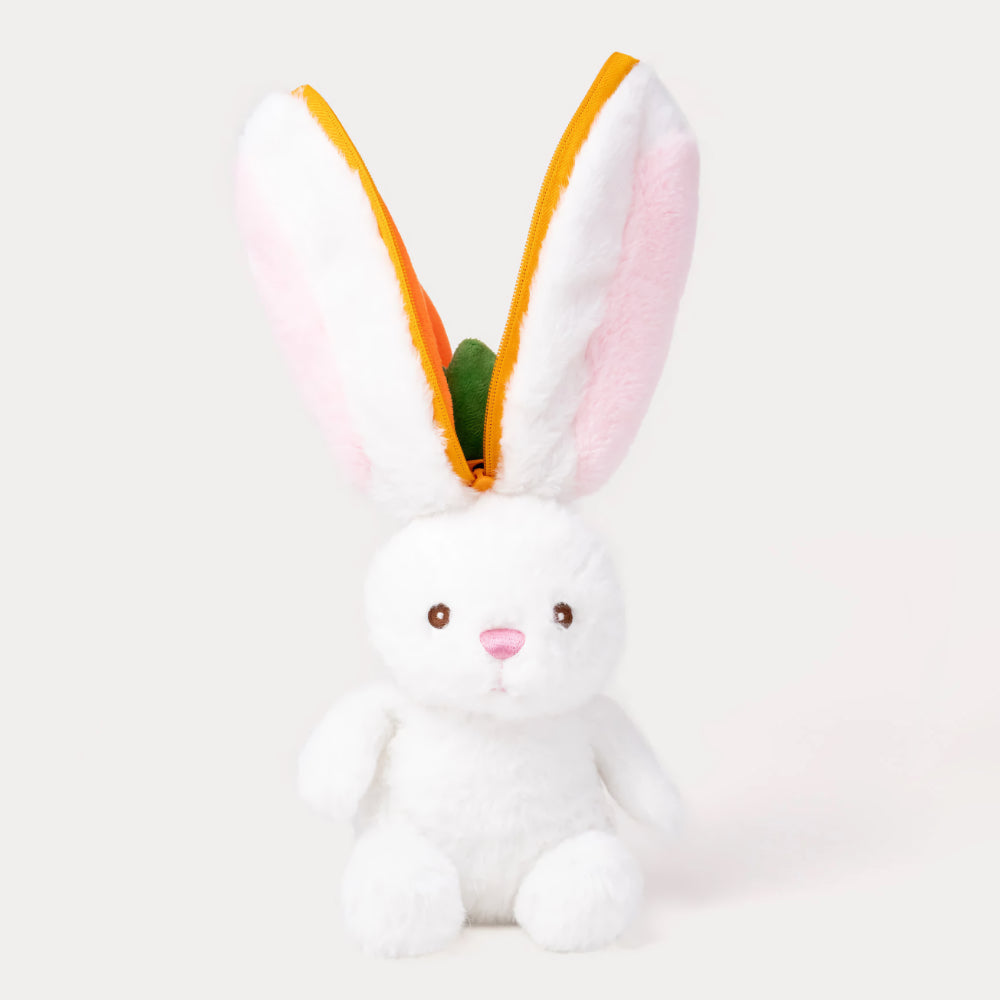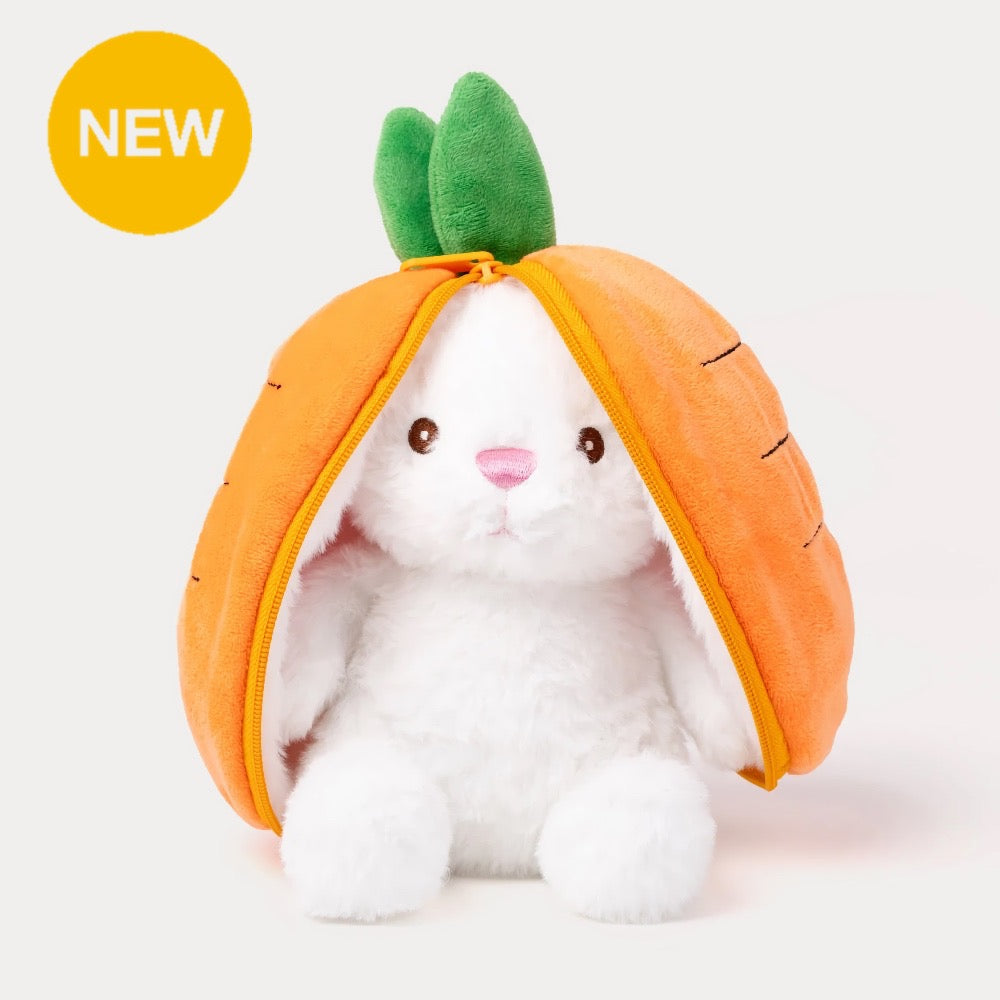 這不是普通的玩偶!拉開拉鍊,裡頭跳出一隻軟萌的兔兔;拉上拉鍊,又變身成一根圓滾滾的可愛紅蘿蔔。兩種造型,雙倍驚喜,滿滿療癒感!